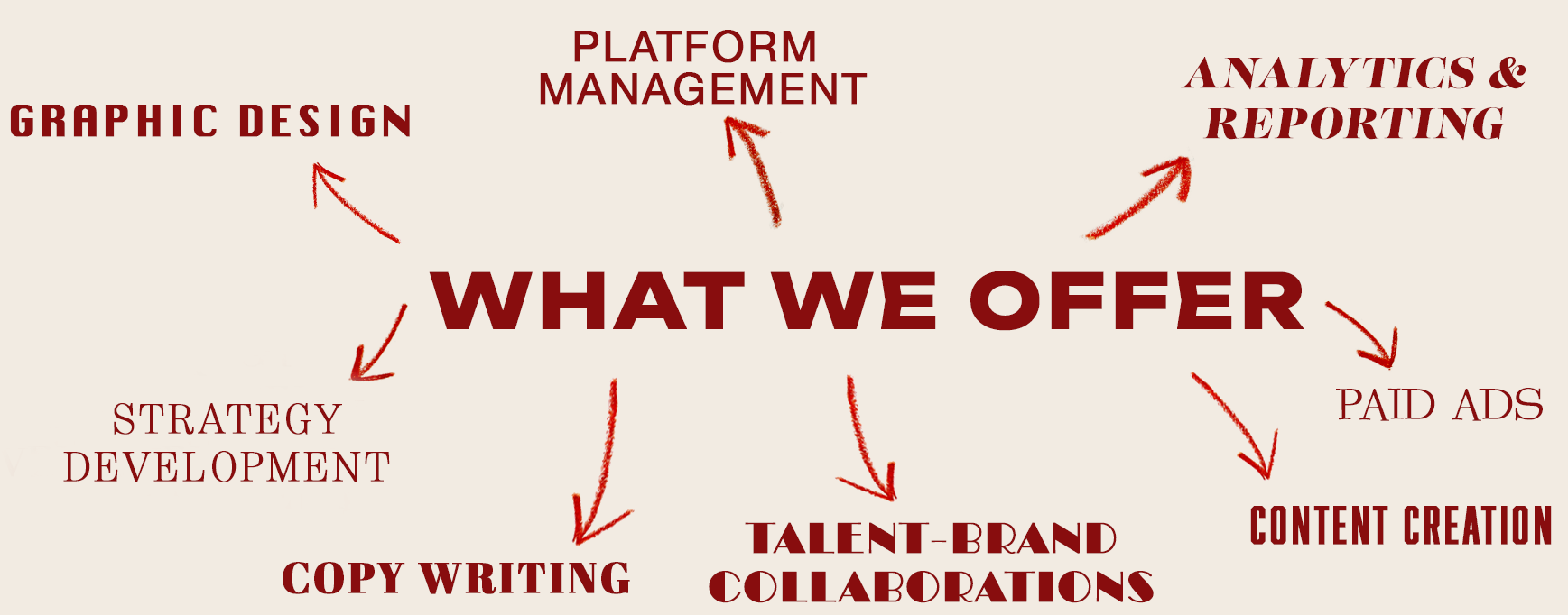 From strategy and graphic design to platform management and photography, we tailor everything to your brand’s needs. Whether you're looking for a full-service social media solution or just a little extra support on a one-off project, our services are completely flexible.